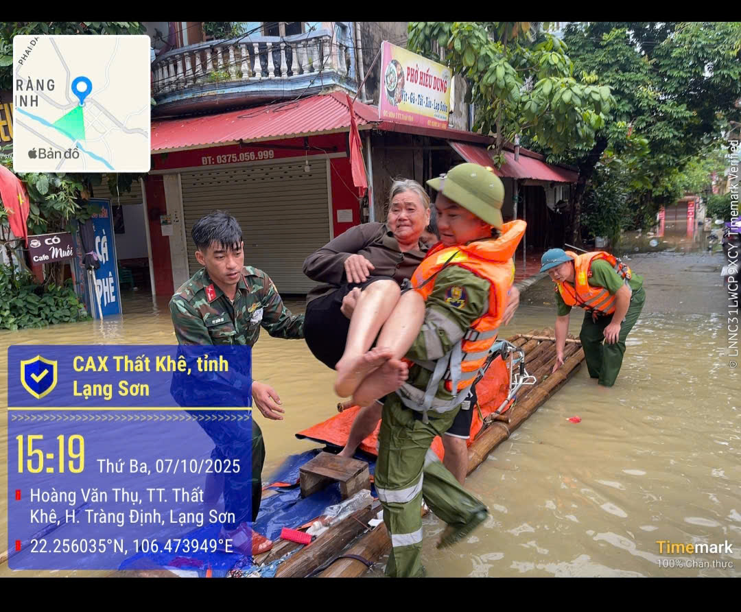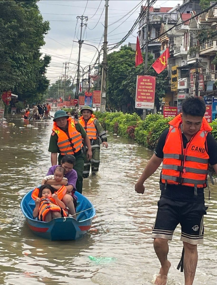 Hình ảnh: Lượng lượng Công an xã Thất Khê phối hợp trong công tác cứu hộ, cứu nạn người dân bị ảnh hưởng của cơn bão số 11 (Matmo)
