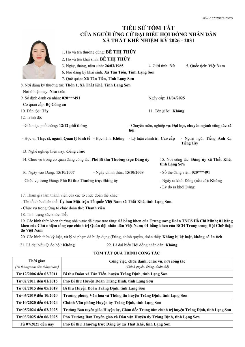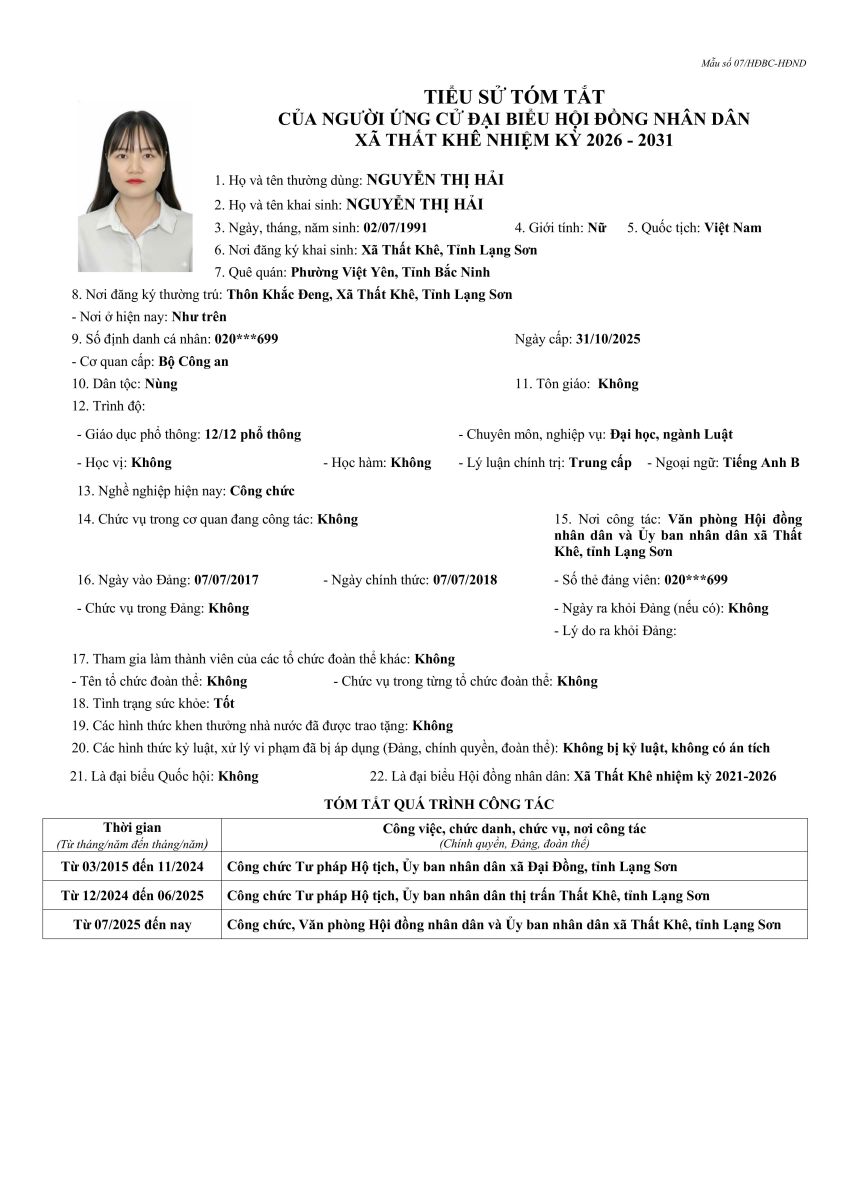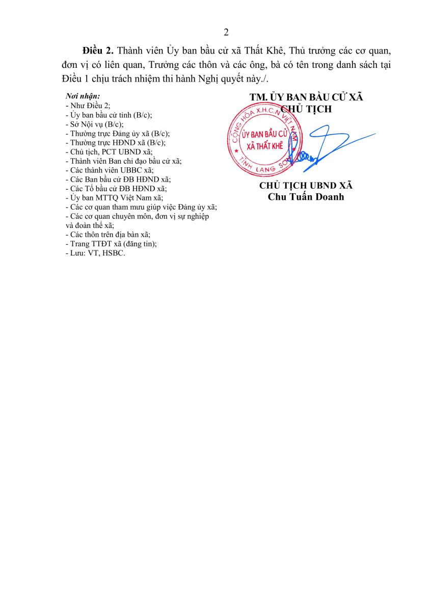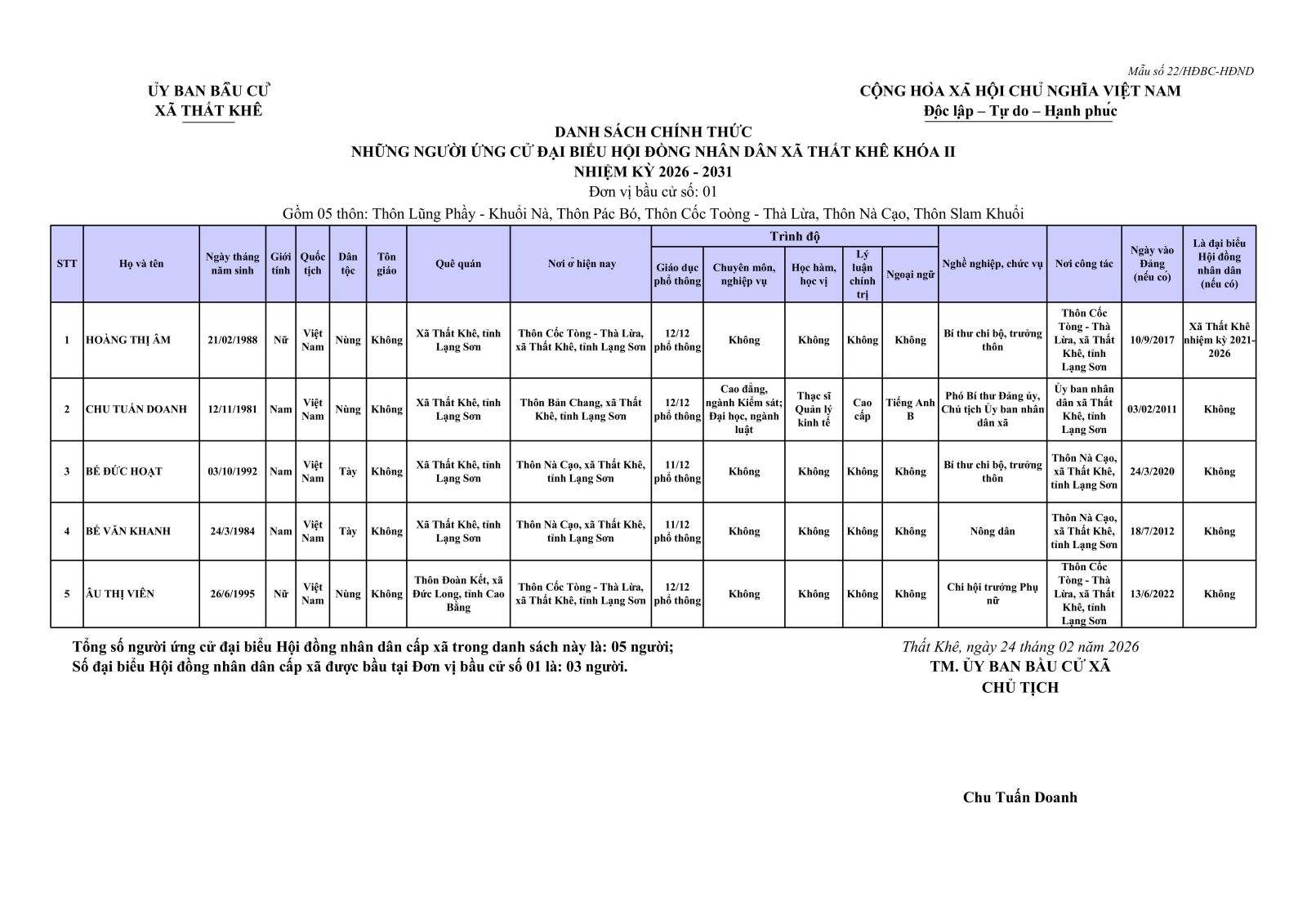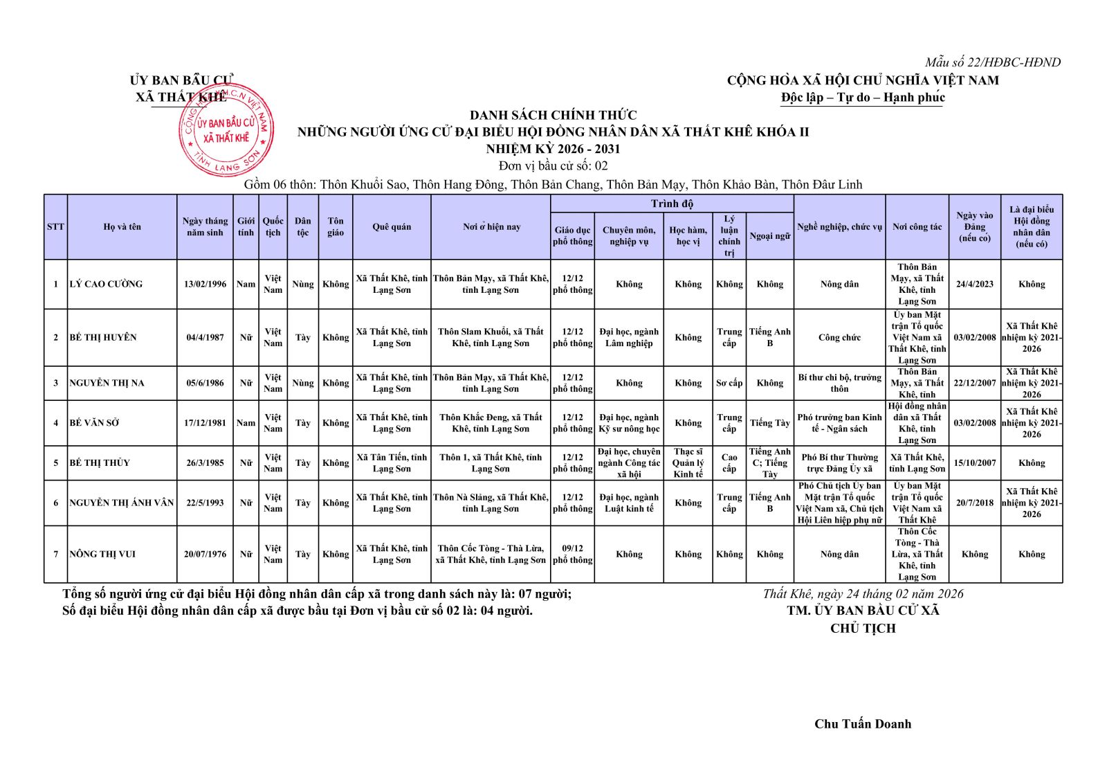Nghị quyết Về việc công bố danh sách chính thức những người ứng cử đại biểu Hội đồng nhân dân xã Thất Khê khoá II, nhiệm kỳ 2026 - 2031 theo từng đơn vị bầu cử