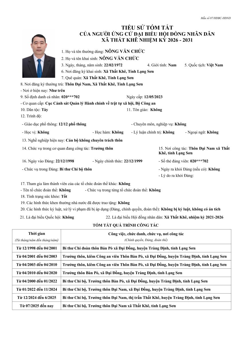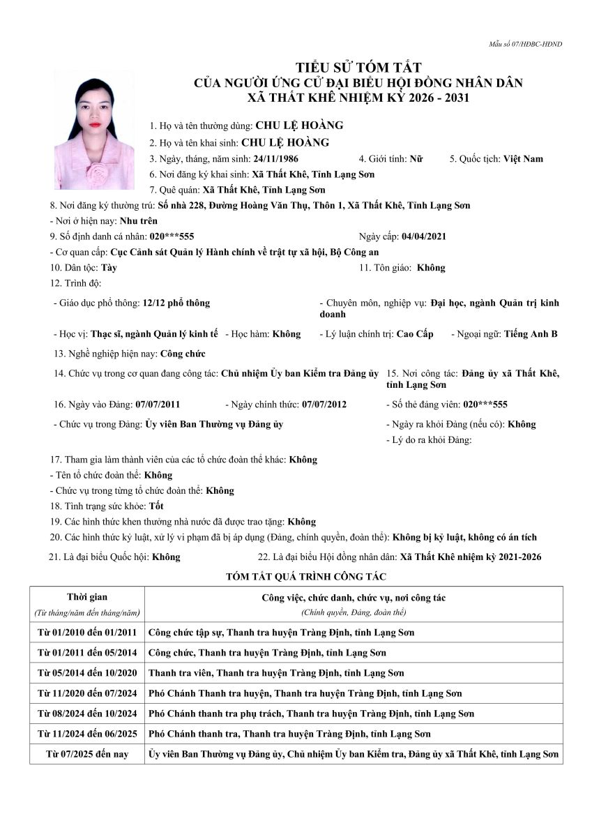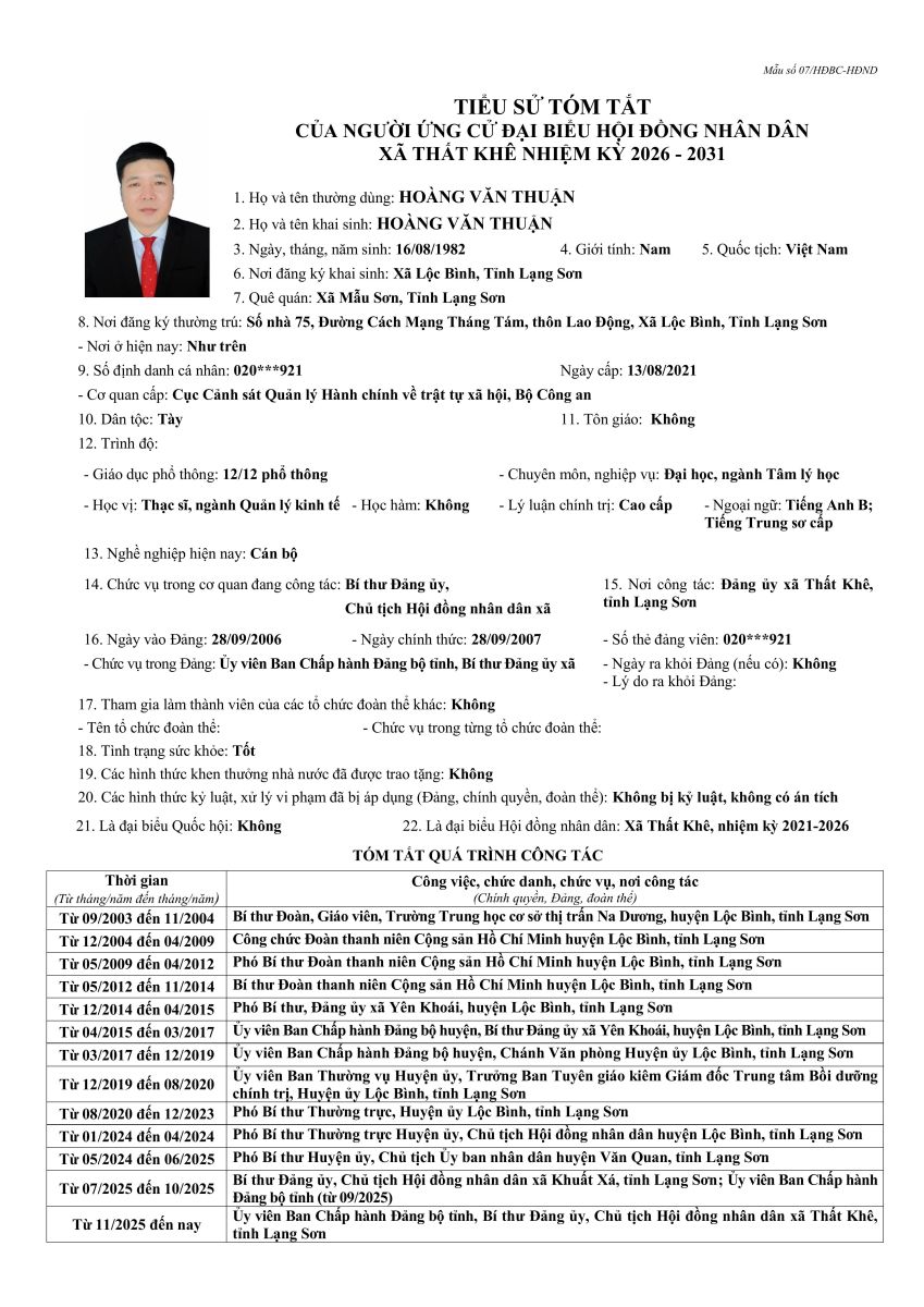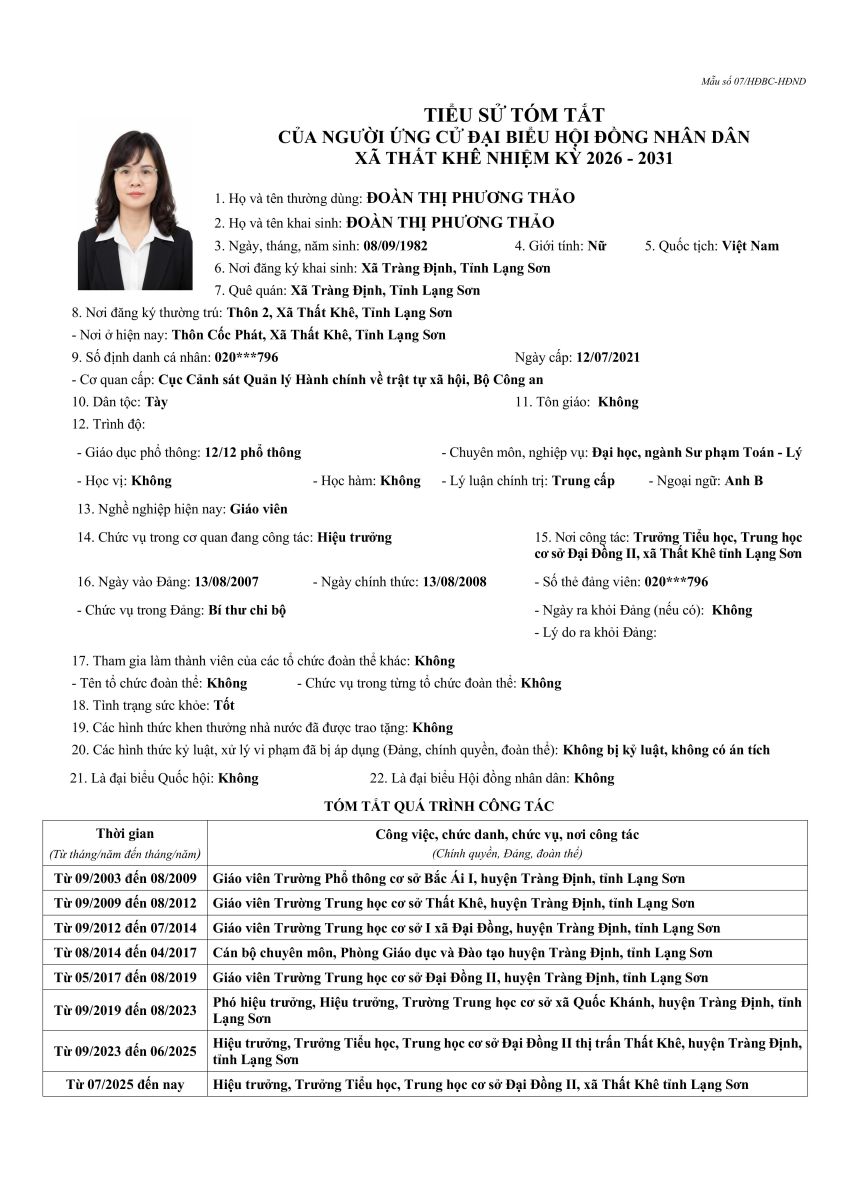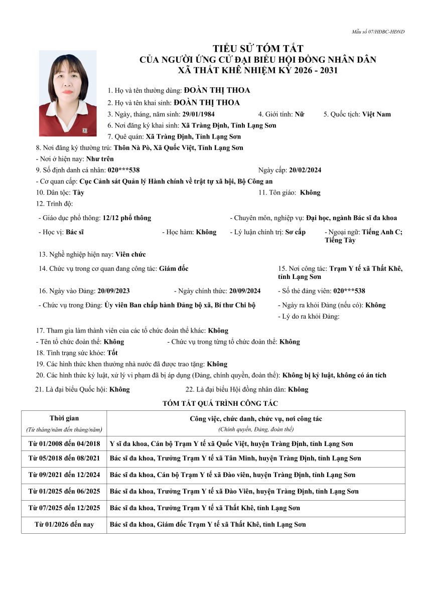 Nghị quyết Về việc công bố danh sách chính thức những người ứng cử đại biểu Hội đồng nhân dân xã Thất Khê khoá II, nhiệm kỳ 2026 - 2031 theo từng đơn vị bầu cử