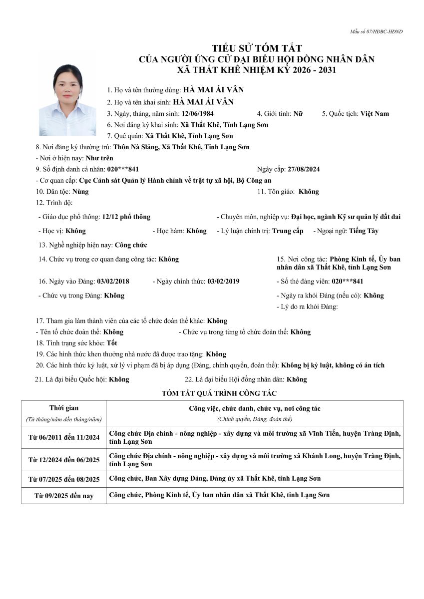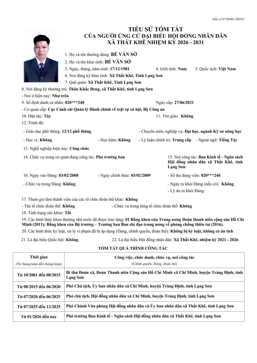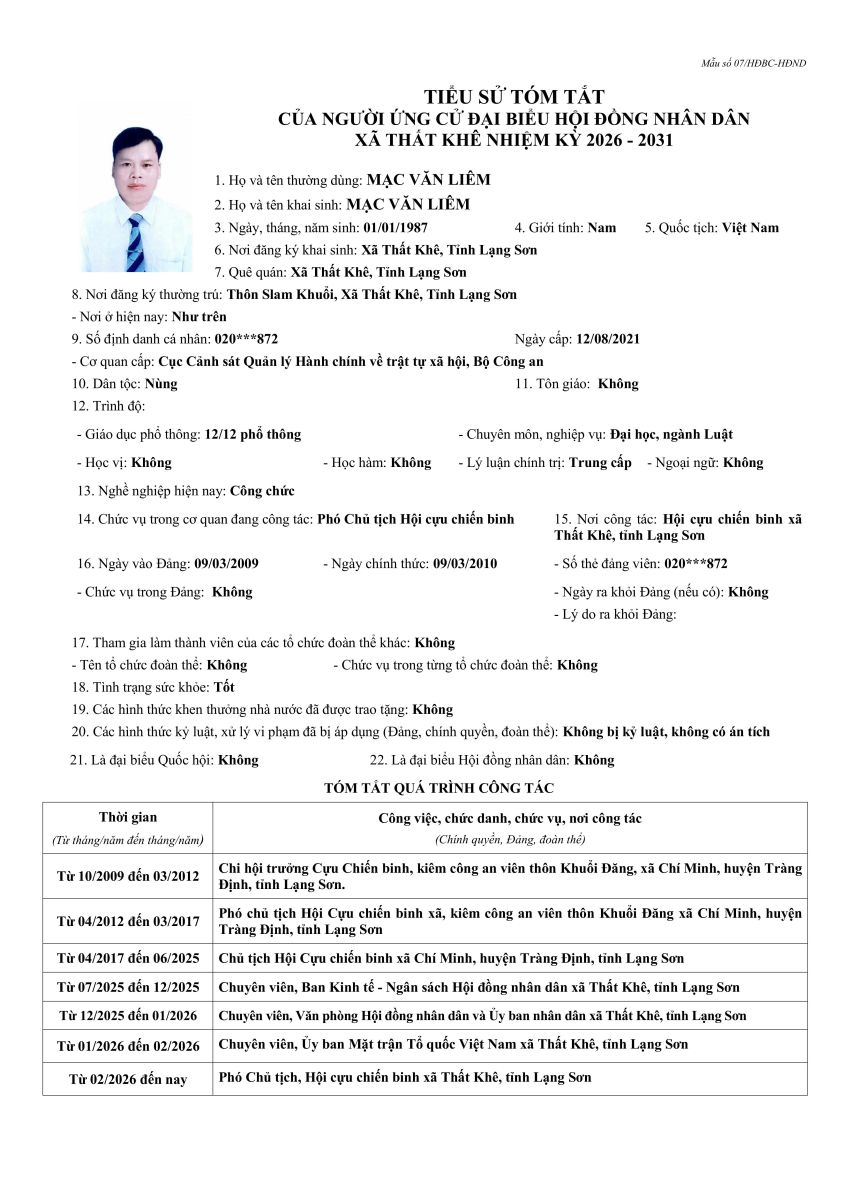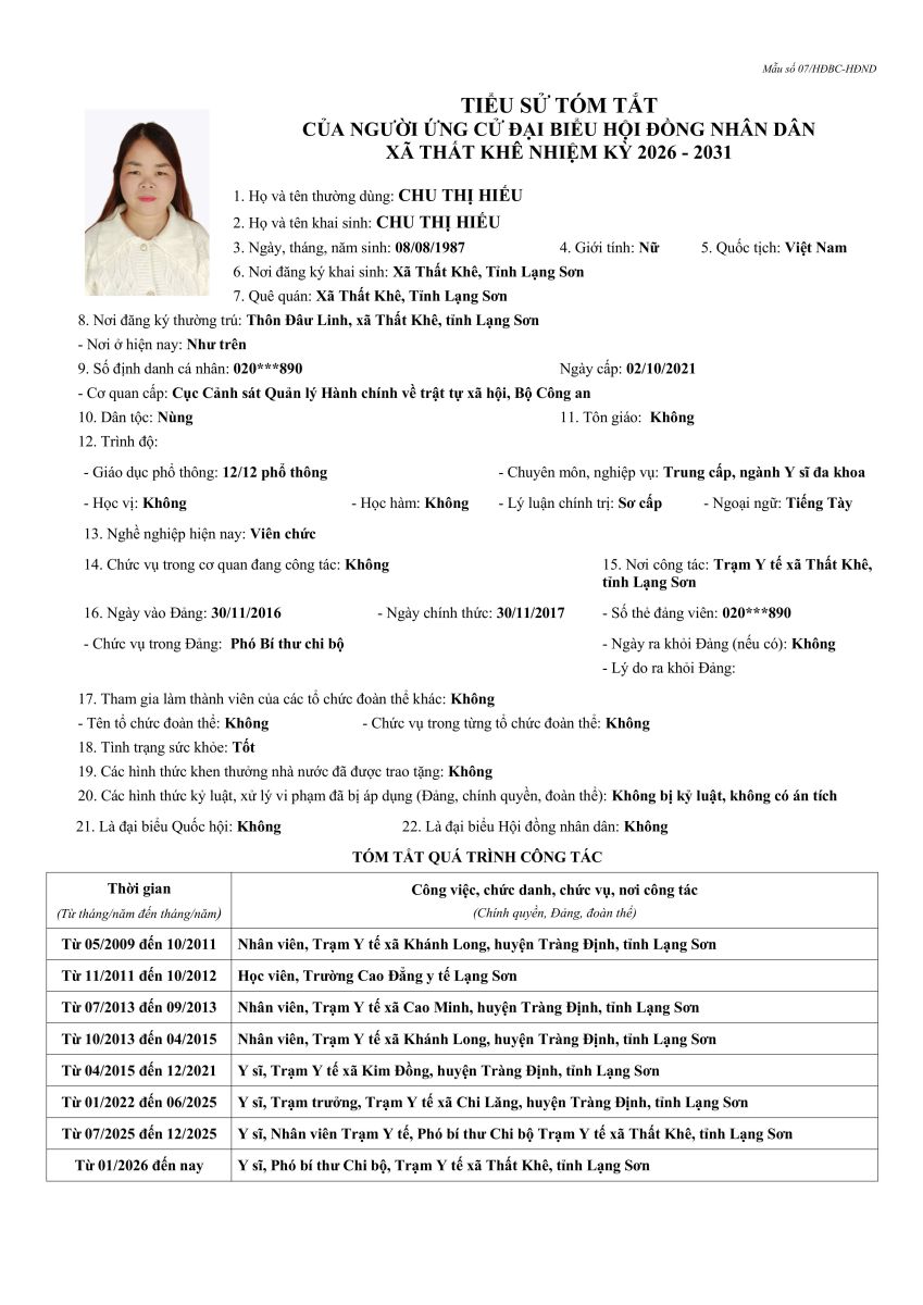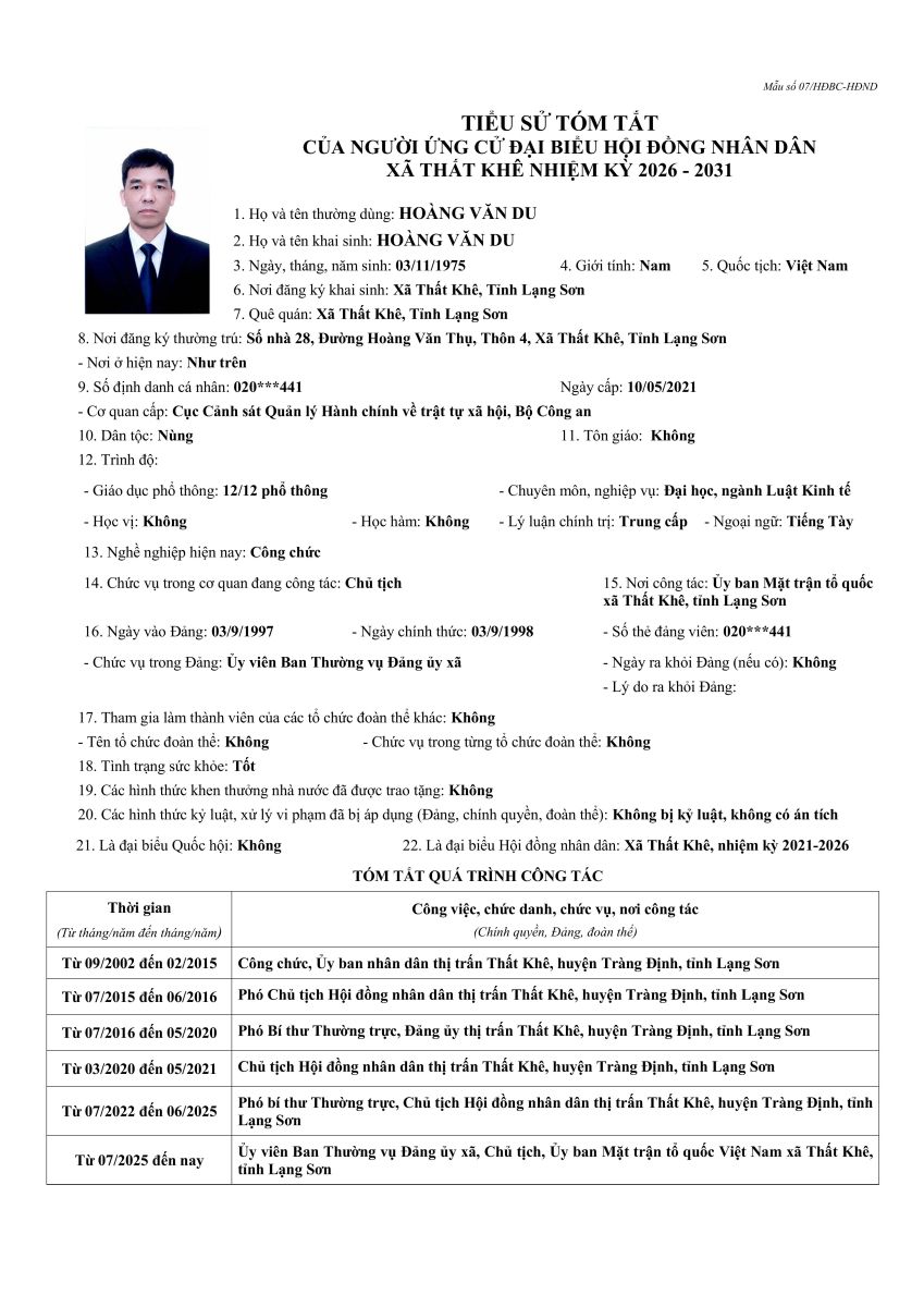 Nghị quyết Về việc công bố danh sách chính thức những người ứng cử đại biểu Hội đồng nhân dân xã Thất Khê khoá II, nhiệm kỳ 2026 - 2031 theo từng đơn vị bầu cử