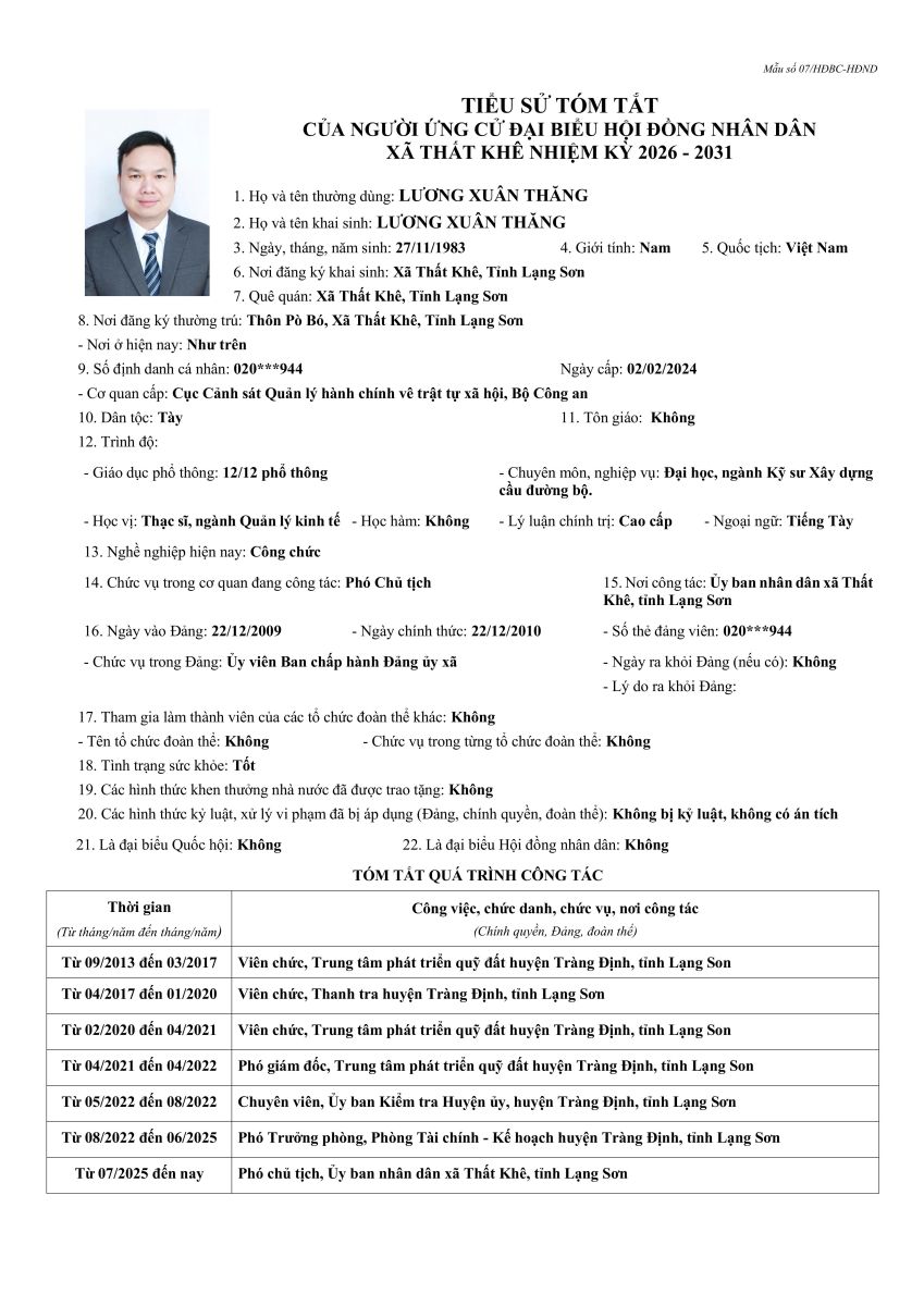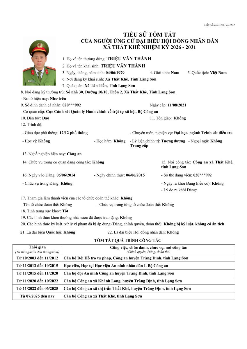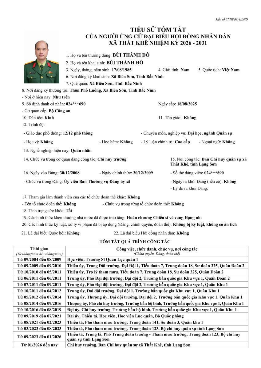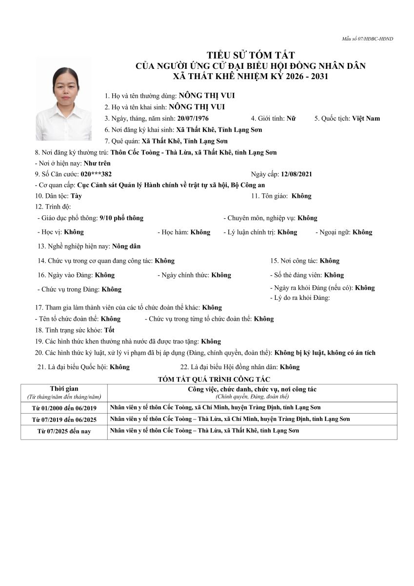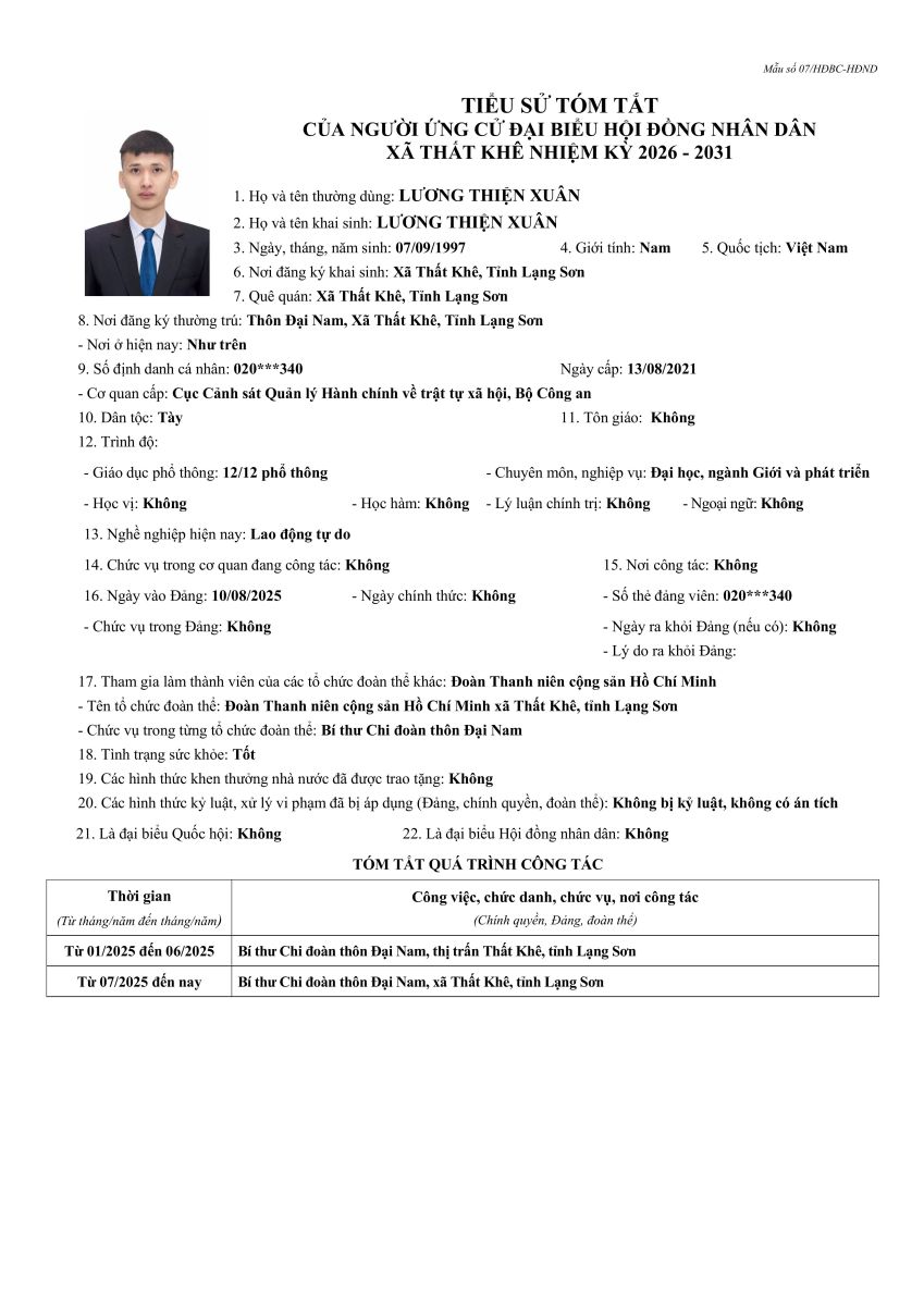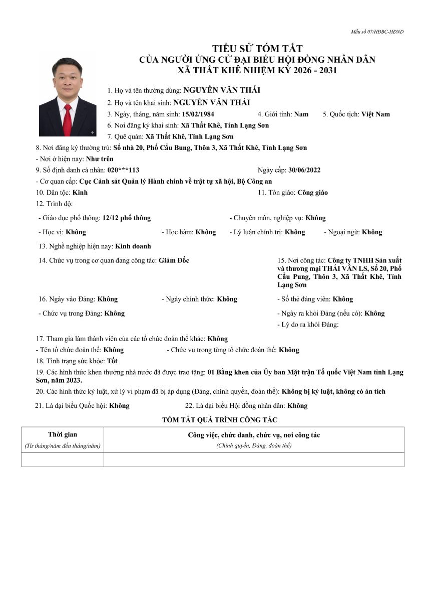 Nghị quyết Về việc công bố danh sách chính thức những người ứng cử đại biểu Hội đồng nhân dân xã Thất Khê khoá II, nhiệm kỳ 2026 - 2031 theo từng đơn vị bầu cử