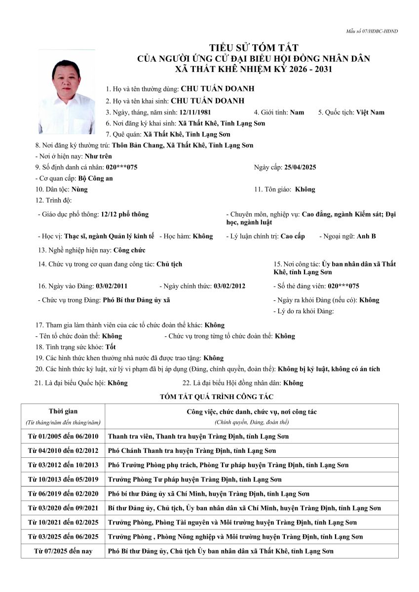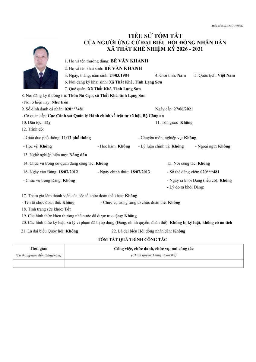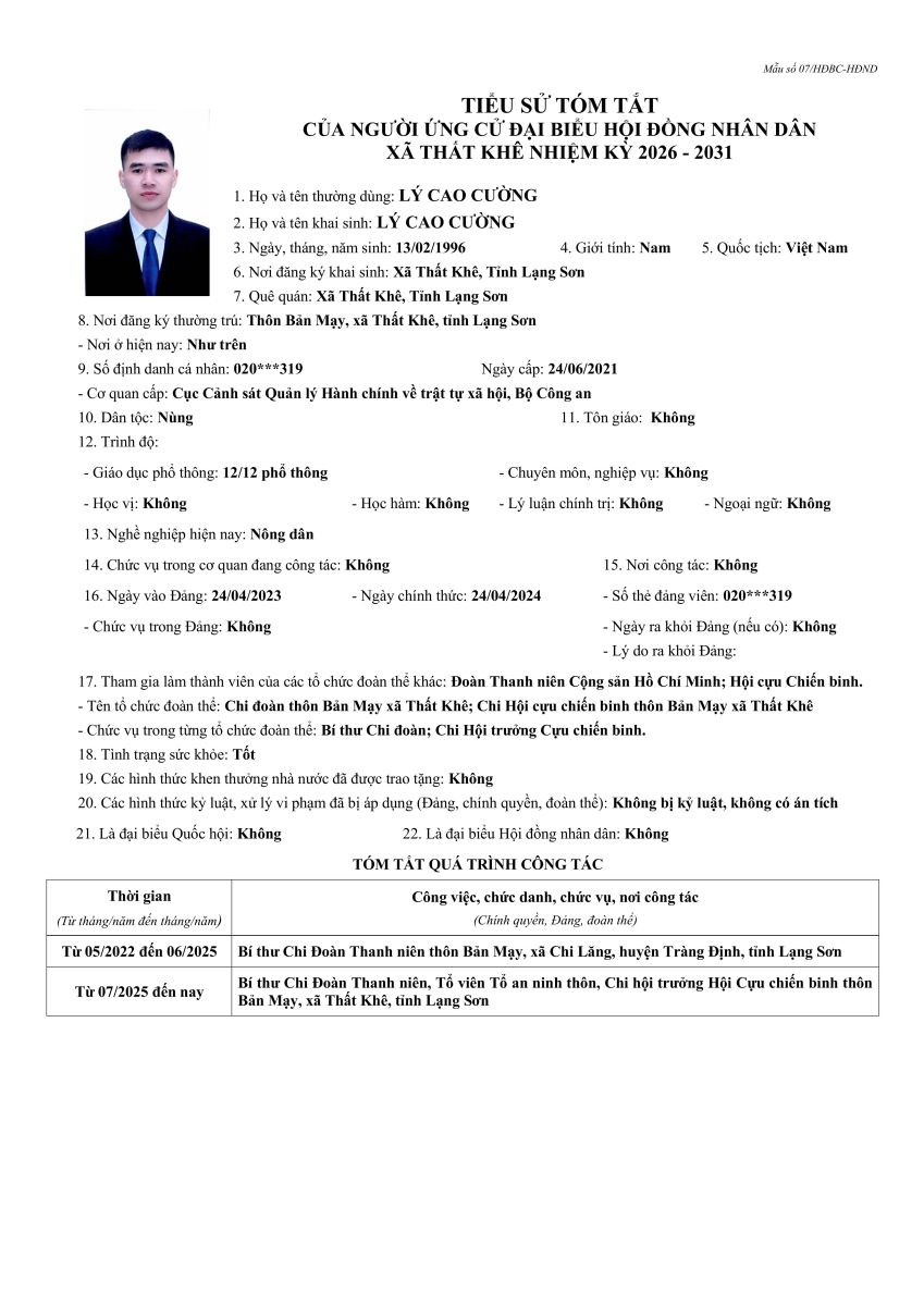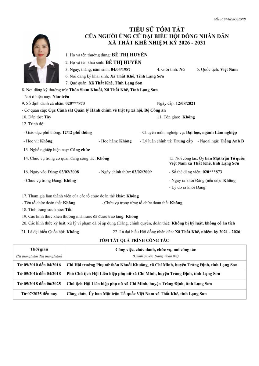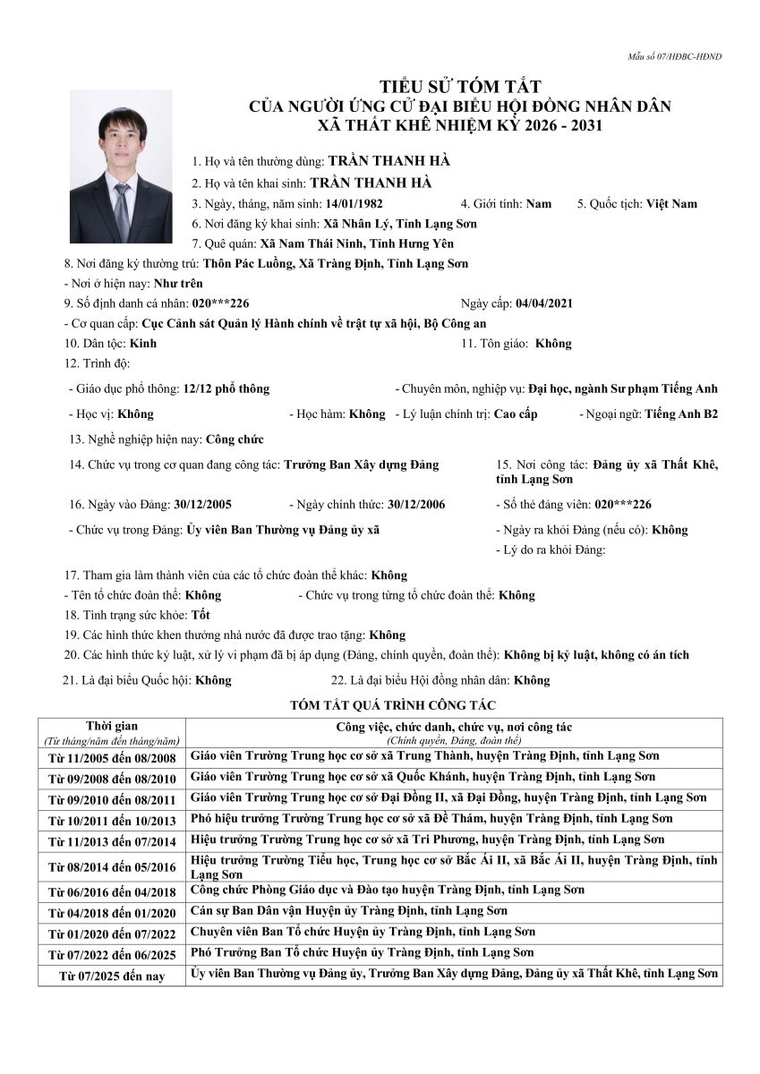 Nghị quyết Về việc công bố danh sách chính thức những người ứng cử đại biểu Hội đồng nhân dân xã Thất Khê khoá II, nhiệm kỳ 2026 - 2031 theo từng đơn vị bầu cử